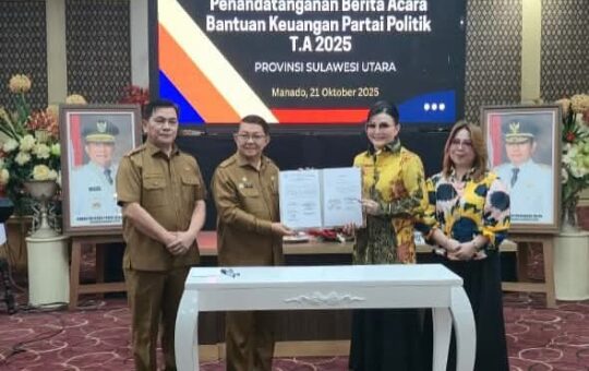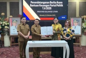 Eugenia Paruntu Hadiri Penandatanganan Bantuan Keuangan Parpol di Kantor Gubernur Sulut