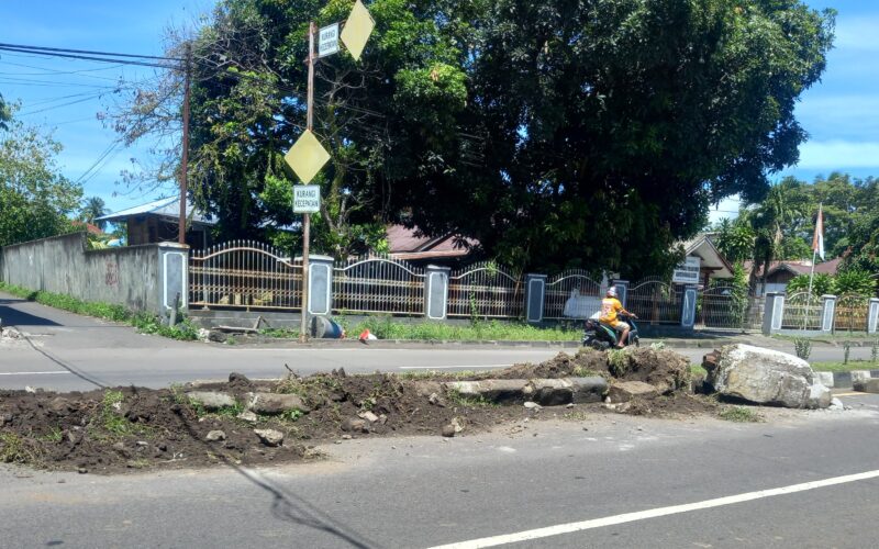 Potensi Bahaya Lalu Lintas di Depan Samsat Amurang, Material Bekas Tabrakan Dibiarkan Berserakan