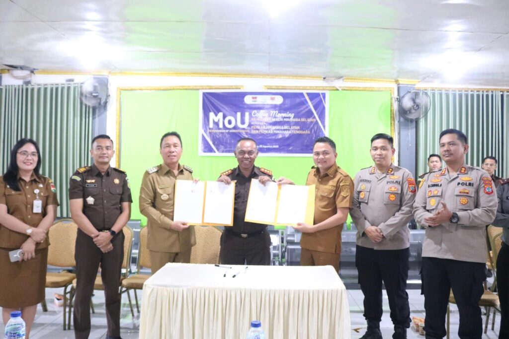 AMURANG, MINSEL – Bupati Minahasa Tenggara, Ronald Kandoli, menghadiri kegiatan Coffee Morning yang dirangkaikan dengan penandatanganan Nota Kesepahaman (MoU) tentang Pengawasan Pelaku Penyalahgunaan Narkotika Pasca Restoratif Justice Rehabilitasi, bertempat di Aula Wale Elur Kejaksaan Negeri Minahasa Selatan, Senin (25/8).