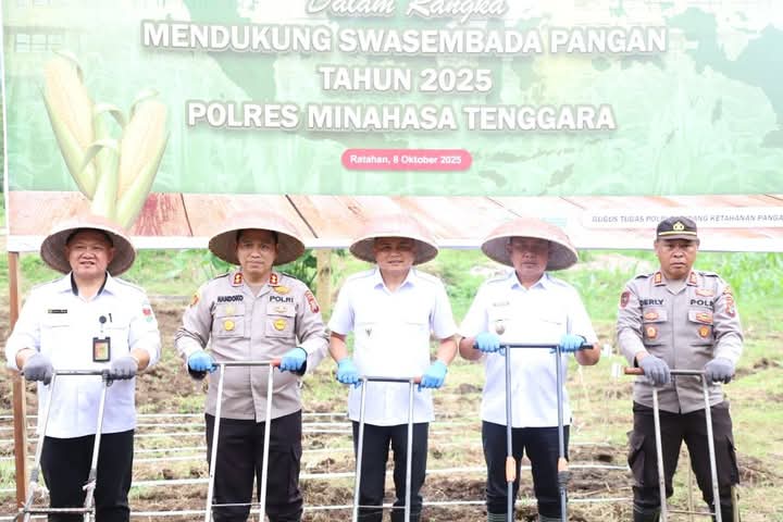 Penanaman jagung serentak ini merupakan wujud nyata komitmen Pemerintah Kabupaten Minahasa Tenggara dan Polres Mitra dalam mendukung program pemerintah pusat menuju swasembada pangan nasional.