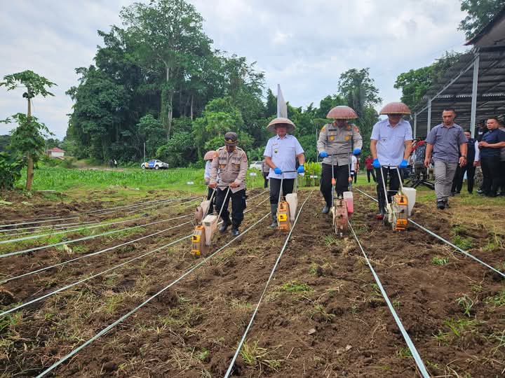 Penanaman jagung serentak ini merupakan wujud nyata komitmen Pemerintah Kabupaten Minahasa Tenggara dan Polres Mitra dalam mendukung program pemerintah pusat menuju swasembada pangan nasional.