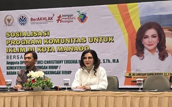 MANADO Inspirasisulut.com — Anggota DPR RI, Dr. Christiany Eugenia Paruntu, SE., STh. (CEP), bersama Kementerian Lingkungan Hidup/Badan Pengendalian Lingkungan Hidup, melaksanakan kegiatan Sosialisasi Program Komunitas untuk Iklim di Kota Manado, Rabu (3/9/2025).
