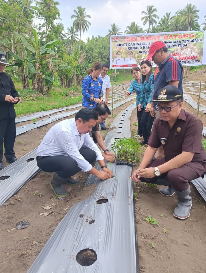 MITRA, Inspirasisulut.com – Wakil Bupati Minahasa Tenggara, Fredy Tuda, mewakili Bupati Ronald Kandoli menghadiri penanaman perdana cabai dan kacang tanah di Desa Kuyanga Rabu, 1 Oktober 2025.