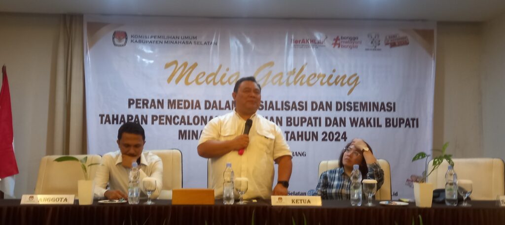 Hal ini dikatakan Ketua Komisi Pemilihan Umum Kabupaten Minahasa Selatan Tommy Moga saat membuka kegiatan Media Media Gathering Peran Media Dalam Sosialisasi dan Diseminasi Tahapan Pencalonan Pemilihan Bupati dan Wakil Bupati Minahasa Selatan Tahun 2024, yang bertempat di Hotel Sutanraja Amurang pada, (26/8/2024).