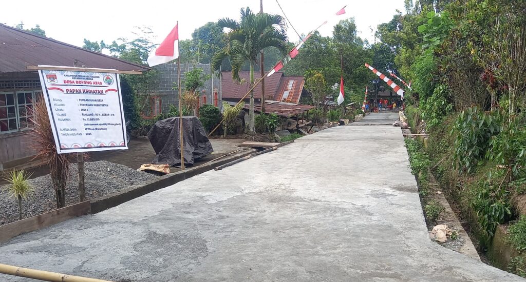 Hukum Tua Boyong Atas, Olivia Mondigir, menjelaskan bahwa pembangunan jalan desa ini memiliki panjang 80 meter dengan lebar 4 meter. Seluruh pengerjaan dibiayai dari Dana Desa sebesar Rp53.865.000.