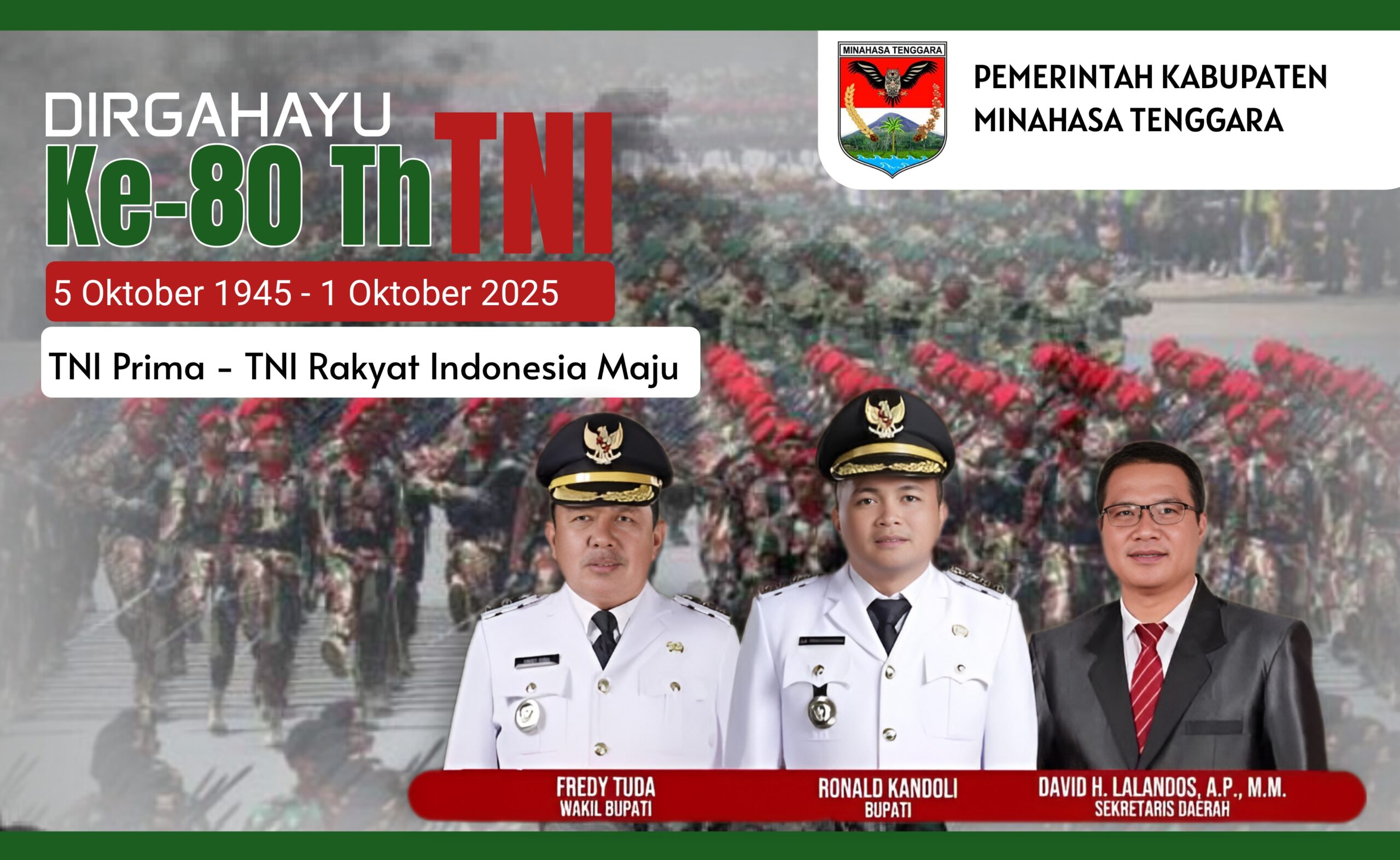 Pemkab Minahasa Tenggara Mengucapkan Dirgahayu TNI ke-80: TNI Prima, TNI Rakyat, Indonesia Maju
