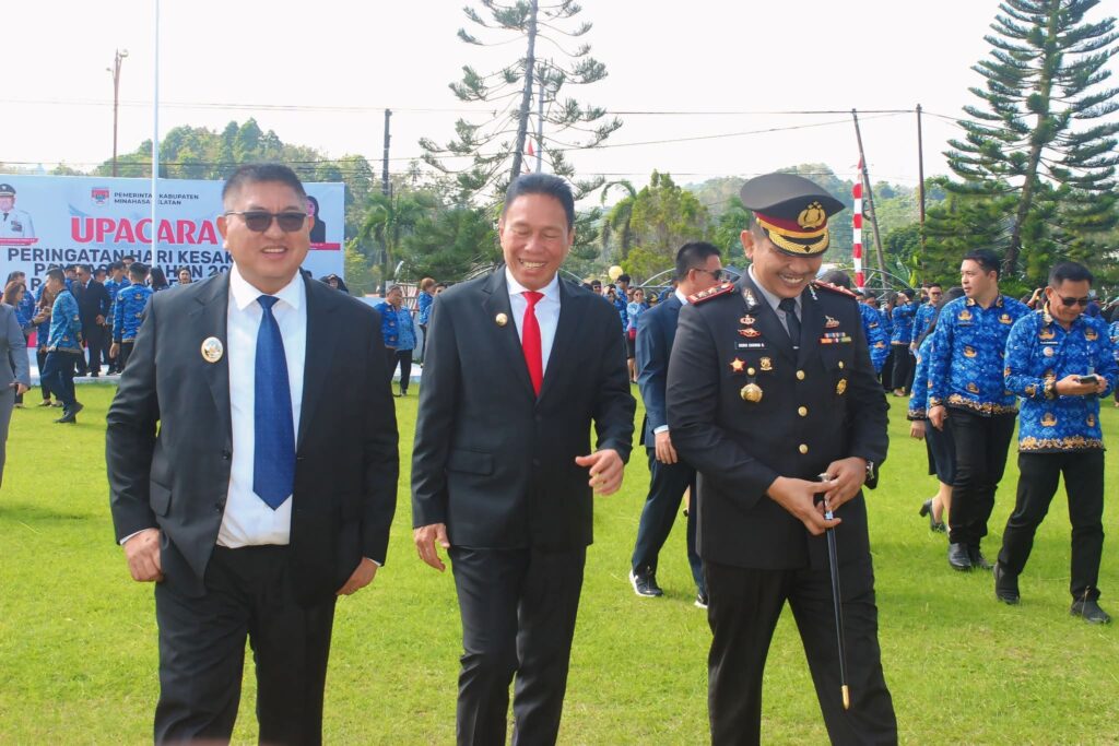 Bupati Minahasa Selatan, Frangky Donny Wongkar, bertindak sebagai Inspektur Upacara, memimpin langsung jalannya peringatan dengan penuh semangat kebangsaan.